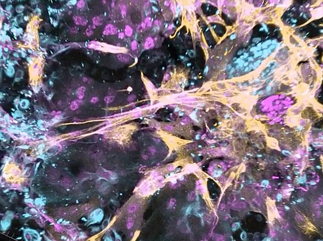 Les imatges en temps real obtingudes en un model murí de la distròfia muscular de Duchenne (DMD), un trastorn genètic que provoca la degeneració muscular (a la dreta; a l'esquerra, múscul normal de ratolí), revelen que la causa residix en les cèl·lules mare musculars, la capacitat de migració i proliferació de les quals un es veu afectada. Per tant, restaurar la funció de les cèl·lules mare podria regenerar el múscul en les persones que patixen DMD.