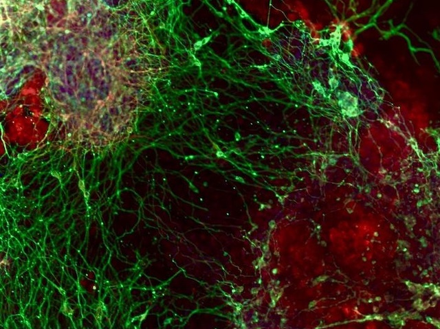 Aquestes neurones (de color verd) es van obtindre a partir de cèl·lules mare embrionàries de ratolí com a part d'un procediment de cribratge genòmic massiu per trobar els gens necessaris per al desenvolupament neuronal. Es va utilitzar la tècnica d'edició genètica CRISPR per eliminar uns 20.000 gens individuals en les cèl·lules mare, la qual cosa va permetre als investigadors veure, d'un en un, quins gens alterats afectaven el destí de neurona. Els científics van identificar més de 300 gens d'este tipus, molts dels quals no se sabia que estigueren involucrats en el desenvolupament neuronal. Diversos dels nous gens candidats es van investigar més a fons en models de ratolí, on es va demostrar que la seua alteració causava microcefàlia (grandària cerebral inusualment xicoteta) i altres anomalies neurològiques. A més, la importància d'almenys un d'estos gens (denominat PEDS1) per al desenvolupament del cervell humà també es va confirmar amb el descobriment de la seua mutació en dos xiquets no emparentats amb greus problemes de desenvolupament neurològic i microcefàlia.