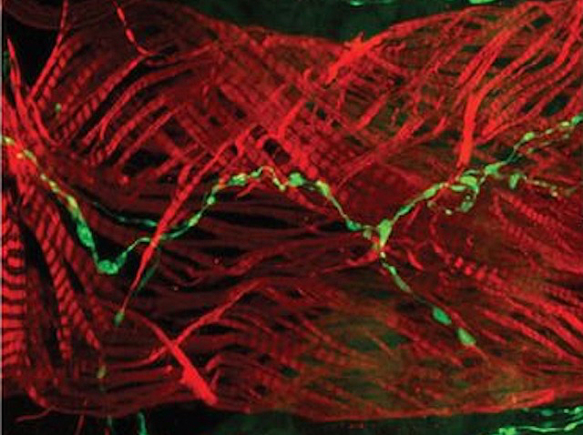 Un model de mosca del vinagre de l’efecte d’una dieta rica en greixos sobre la funció cardíaca (l’alt contingut en greixos provoca un augment i una irregularitat del batec cardíac) revela que l’hormona adipocinètica (equivalent a la nostra hormona glucagó) augmenta amb una ingesta elevada de greixos. I l’equip va descobrir neurones (ressaltades ací en verd) en el múscul cardíac que responen a aquesta hormona regulant el batec del cor.
