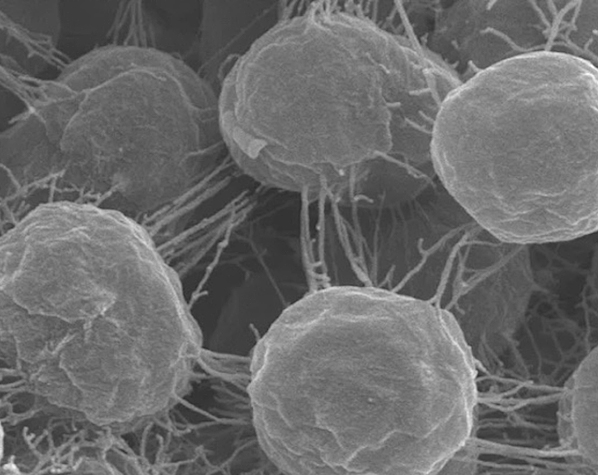 Les infeccions bacterianes contretes a l'hospital (nosocomials) poden ser les més difícils de combatre, ja que sovint desenrotllen resistència als antibiòtics. Acinetobacter baumannii és un d'estos microorganismes i, igual que altres bacteris gram negatius, es protegix gràcies a la seguretat que li proporciona el nombre, formant una biopel·lícula 3D protectora entre les seues veïnes. Este estudi revela la complexa arquitectura de la pel·lícula formada per pili (els connectors filiformes que emanen de les cèl·lules de A. baumannii, que s'observen ací mitjançant microscòpia electrònica), revelant els mecanismes subjacents a la seua formació i, per tant, nous objectius per a combatre la resistència als antibiòtics. Llig el document publicat de la investigació ací.