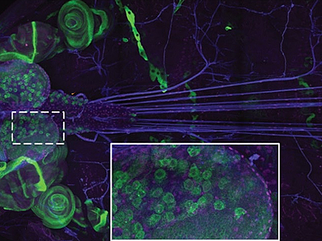 L’abraçada perfecta és reconfortant, transmet el missatge just. Si és massa vigorosa, et deixa sense aire; si és massa tímida, et deixa fred. Així és l’equilibri que aconseguixen les cèl·lules glials (les cèl·lules que donen suport a les neurones en el sistema nerviós). Un nou estudi en larves de mosca del vinagre mostra que les cèl·lules glials primer creixen, i només després emboliquen una capa protectora al voltant de les neurones quan estan preparades i estimulades per un conjunt de senyals anomenat Notch (activitat mostrada en verd en el teixit del sistema nerviós de la larva que es veu a la imatge). Quan la senyalització Notch es reduïa, les cèl·lules glials creixien però no embolicaven correctament. Quan s’activava en excés, embolicaven massa. Açò mostra que un equilibri i una temporització precisos són essencials. Este mecanisme fonamental de control té paral·lelismes en humans, on comprendre com les cèl·lules glials emboliquen els nervis podria ajudar a orientar nous tractaments per a danys nerviosos o malalties en què este procés falla.