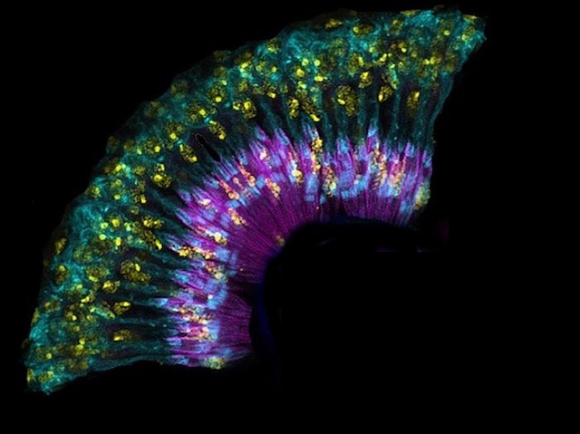 La pèrdua auditiva neurosensorial (PANS), causada per la disfunció de la còclea o les seues connexions nervioses, és molt comuna en la població d'edat avançada, però també és possible nàixer amb PANS o desenrotllar-la a una edat primerenca. Esta forma d'inici primerenc està relacionada amb diversos gens, més recentment, el gen de la carboxipeptidasa D (CPD). La CPD regula la producció de la molècula de senyalització òxid nítric (NO) a través del processament d'arginina (un aminoàcid), i els estudis mostren que les cèl·lules de pacients amb PANS amb mutacions de CPD tenen nivells inusualment baixos de NO. Els estudis d'un model de mosca del vinagre de deficiència de CPD van revelar que els animals tenen anomalies cel·lulars en el seu equivalent de la còclea, l'òrgan de Johnston (a la foto), i mostren comportaments consistents amb la discapacitat auditiva. És important destacar que això podria revertir-se parcialment quan a les mosques se'ls va administrar arginina per a donar suport a la producció de NO, el que augmenta l'esperança que els tractaments dirigits a la via CPD / arginina / NO també puguen ajudar a restaurar l'audició en pacients amb PANS.