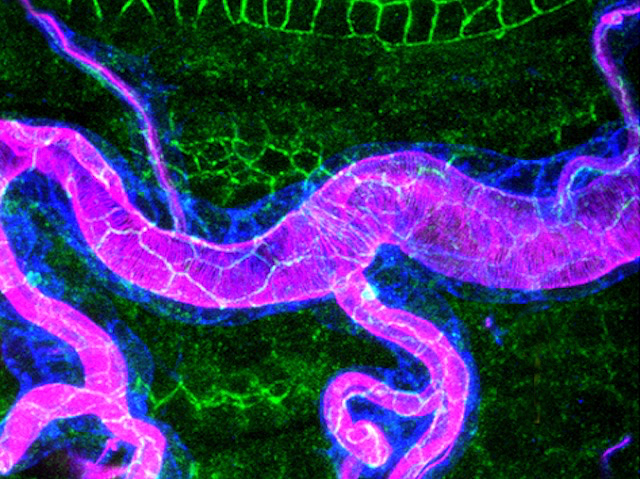 Si els davanters estrela de dos equips de futbol oposats intercanviaren bàndols, podrien trobar que els gols desapareixen al no tindre els seus companys d'equip de sempre per a recolzar-los-los. Este és el cas de dos enzims que produïxen el mateix material en les mosques del vinagre. La quitina és un polímer estructural que forma part tant de l'exoesquelet dur dels insectes com del revestiment protector de les estructures internes. Dos enzims diferents creen quitina, però un nou estudi va demostrar que no són intercanviables. Un produïx quitina per a l'exoesquelet i els tubs respiratoris (de color rosa, a la tràquea retratada), i l'altre per al revestiment intestinal, i cap d'ells podria fer el seu treball en la posició de l'altre. Això podria explicar com els insectes elaboren formes de quitina amb textures i funcions úniques, i serà d'interés pels bioenginyers, per aprofitar la seua robustesa biodegradable per a materials biomèdics, o els ecologistes i epidemiòlegs, per elaborar tàctiques de control de determinats insectes.