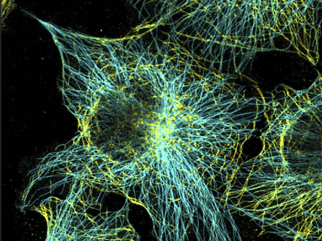 Toca-ho una mica i mira què passa. Això és, en el fons, el primer experiment de qualsevol biòleg intrèpid, quan de menut explora la natura al jardí. Ara, però, alguns biòlegs ja ben crescuts han desenvolupat una manera molt més sofisticada de trastejar amb precisió el material biològic: una nova eina per manipular directament la vimentina, un component estructural de l’esquelet cel·lular. Fins ara, els mètodes disponibles es basaven a observar els efectes a llarg termini provocats per l’edició genètica o pels fàrmacs, que sovint també interferixen amb altres estructures cel·lulars i dificulten saber quina part fa què exactament. El nou sistema utilitza llum o substàncies químiques per manipular els filaments de vimentina, i l’equip ha comprovat que això no afecta altres parts del citoesquelet (com els microtúbuls, que es veuen a la imatge ressaltats en groc i blau). La pertorbació desplaça alguns components cel·lulars, com els mitocondris, però no altres, com els lisosomes; a més, reduïx la rigidesa global de la cèl·lula. Tot plegat mostra una nova eina per estudiar amb precisió el paper de la vimentina en la cicatrització de ferides, la propagació del càncer i el desenvolupament de malalties.